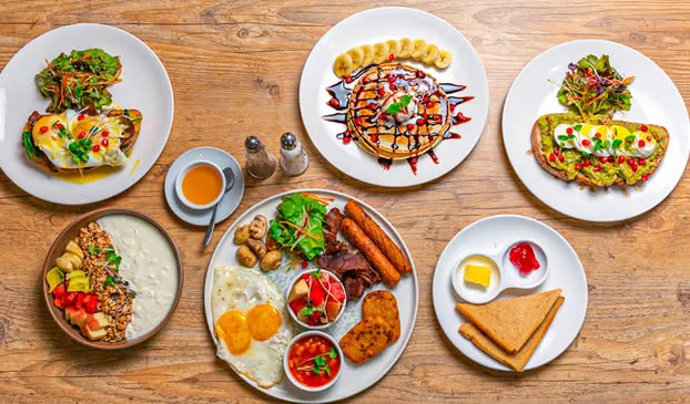 (sausage, bacon, egg, brown bread, hash brown, fruit salad, beans, butter jam served with americano)
